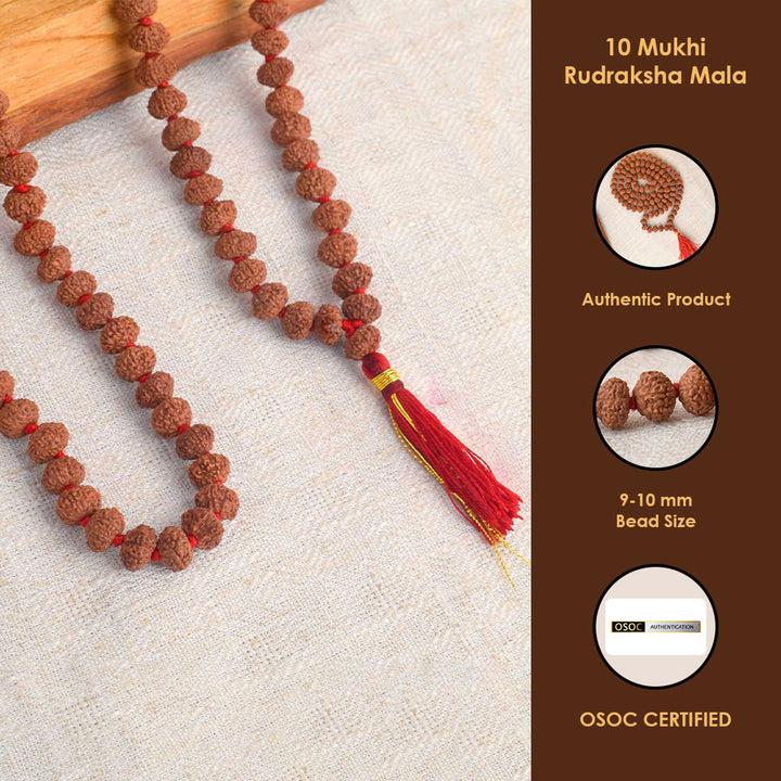 Buy 10 Mukhi Rudraksha Mala for Divine Protection | Satvikstore.in – satvikstore.in