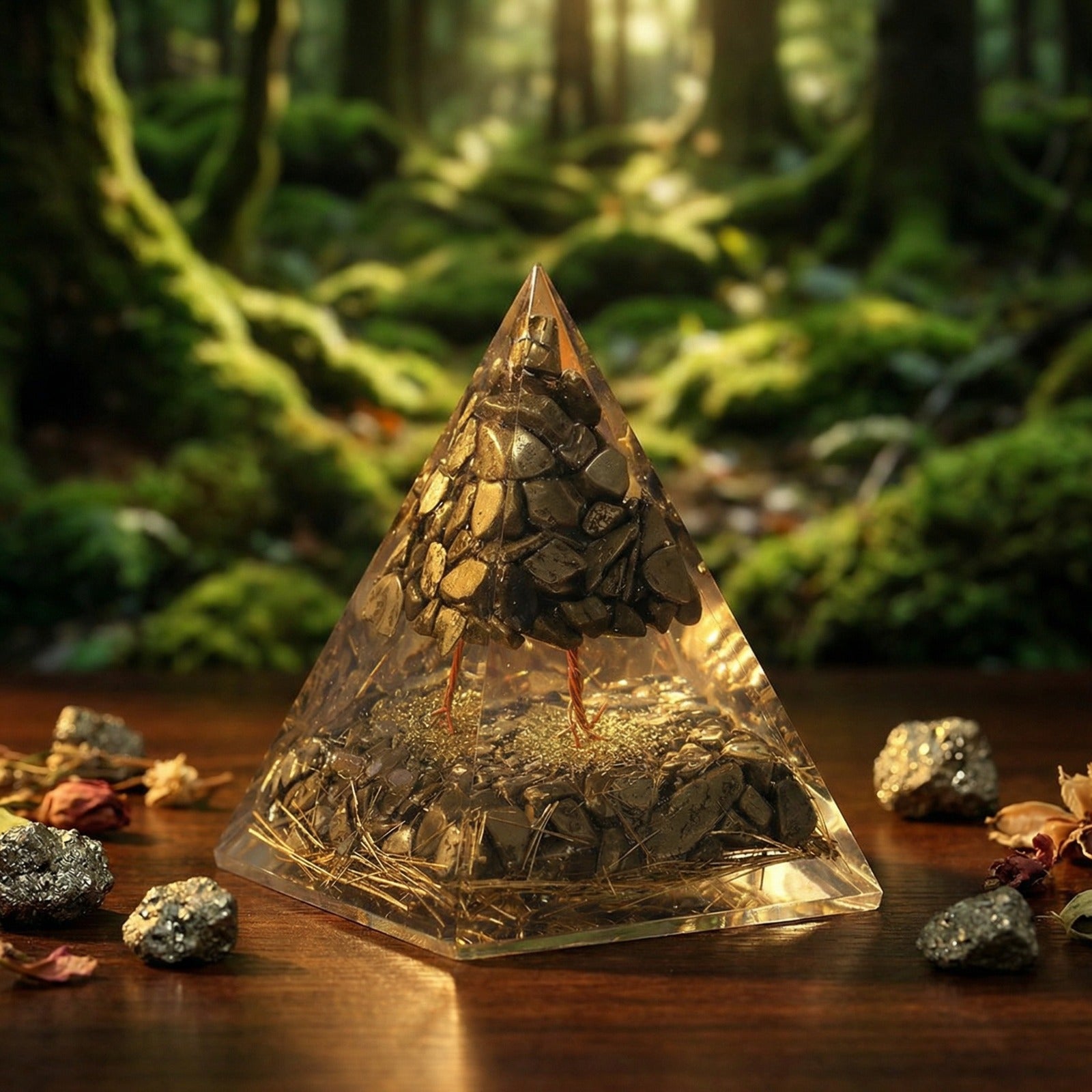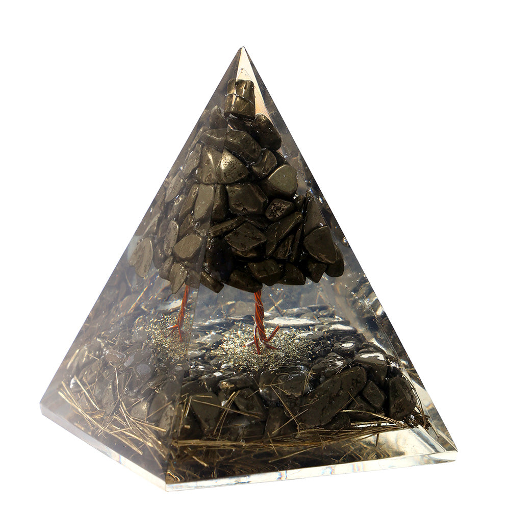 Pyrite is known as the stone of wealth and protection, helping to attract financial opportunities and shield against negative energies. The tree formation inside the pyramid adds a symbolic touch of growth and strength, making it a meaningful spiritual tool for home, office, or meditation spaces.