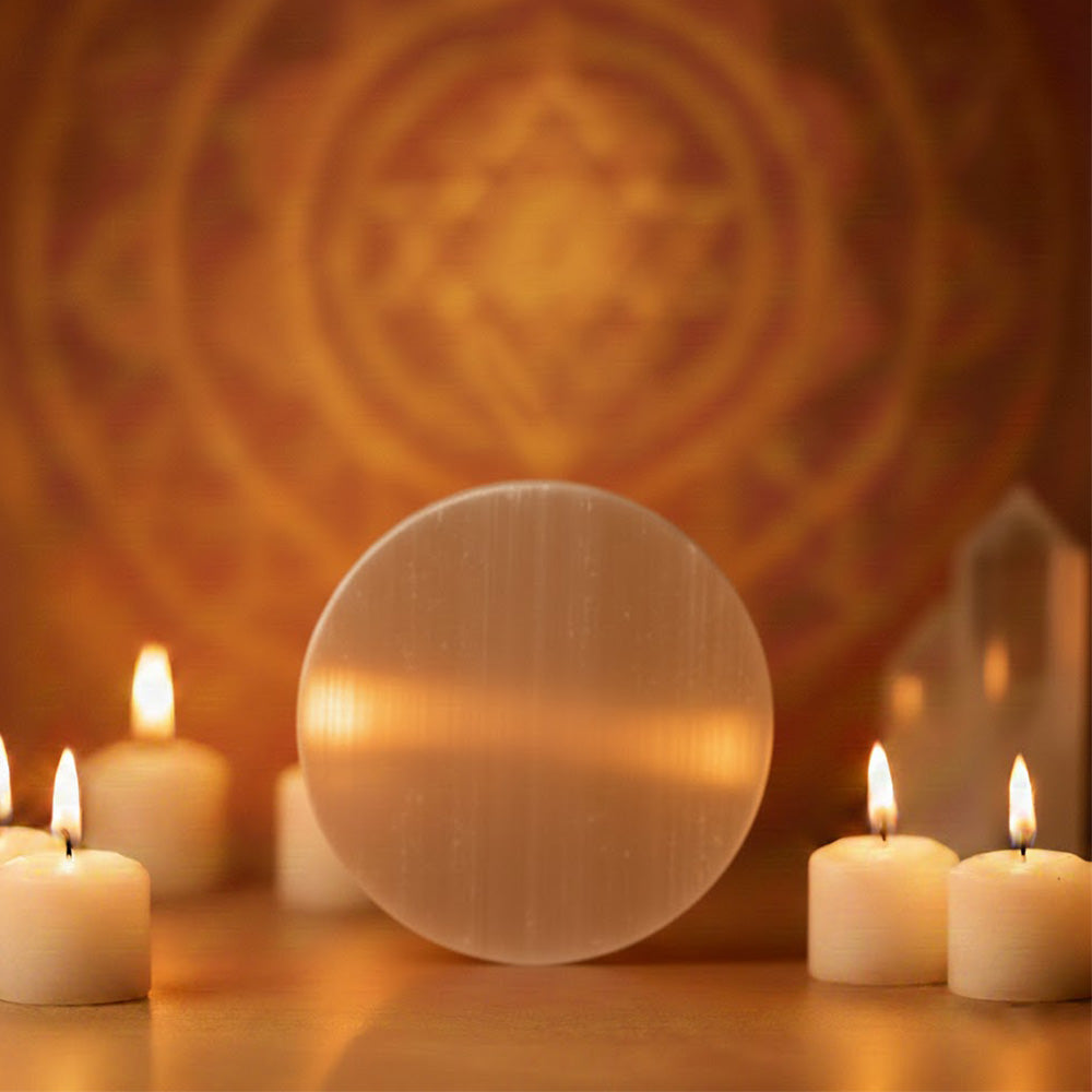 Round Salenite Plate | Salenite Crystal Charging Plate | Crystal Cleansing Plate | Healing Salenite Plate | Energy Charging Crystal