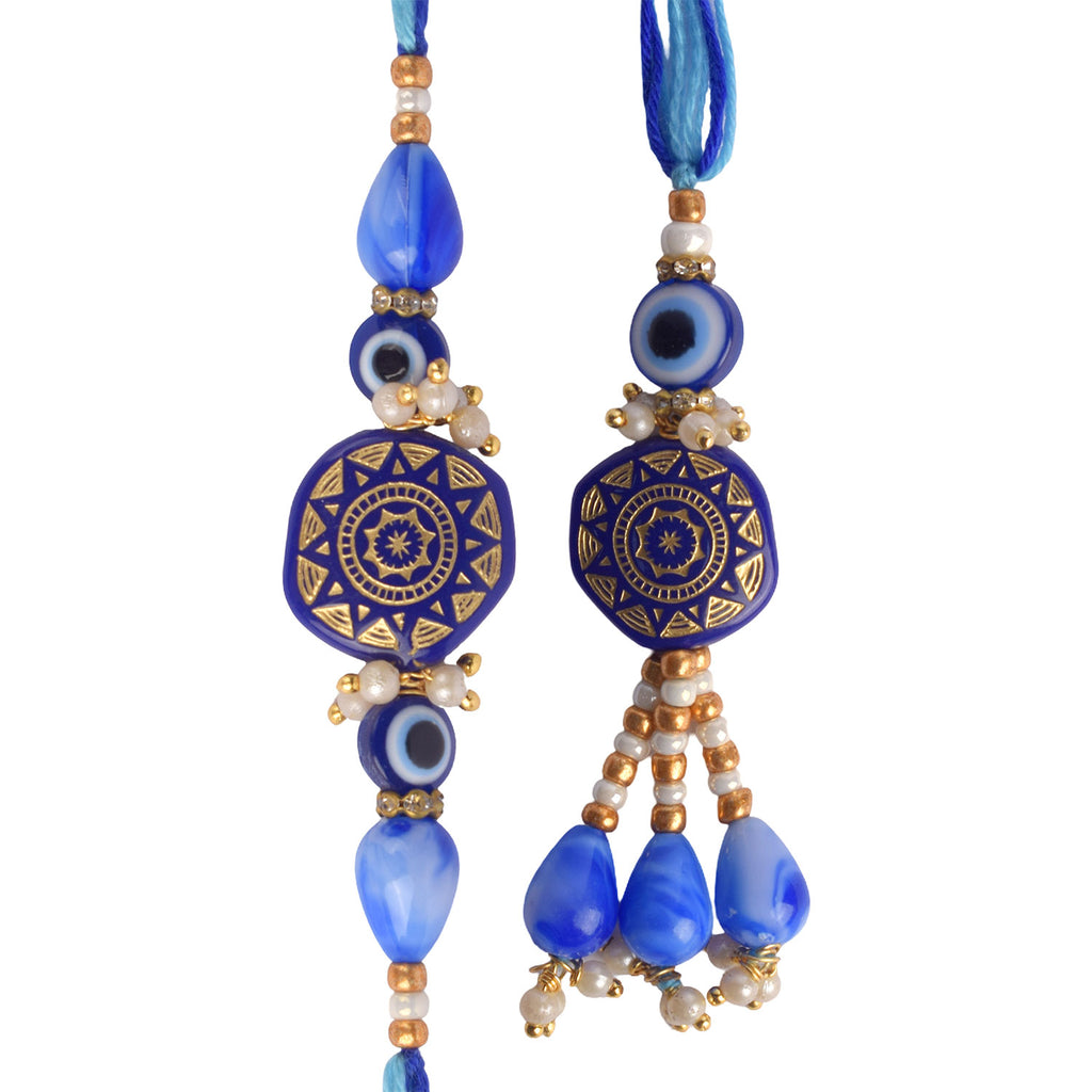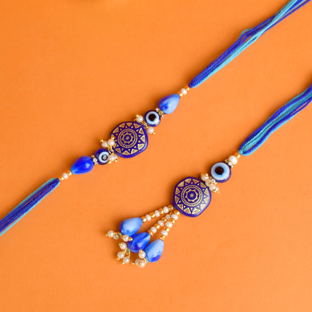 Bold and Beautiful Evil Eye Beaded Bhaiya Bhabhi Rakhi Set