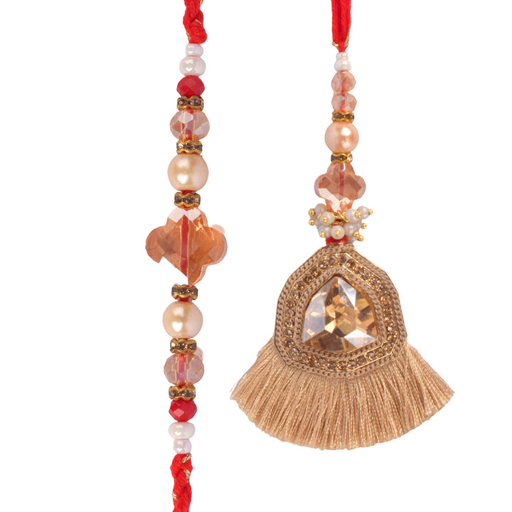 For those looking for a touch of elegance and uniqueness, our Agate Stone Bhaiya Bhabhi Rakhi collection is an ideal choice. The Agate stone, with its mesmerizing patterns and vibrant hues, adds a touch of sophistication and charm to these Rakhis. The Agate Stone Bhaiya Bhabhi Rakhi set is a perfect blend of spirituality, style, and protection, symbolizing the divine blessings and the unbreakable bond between the couple.