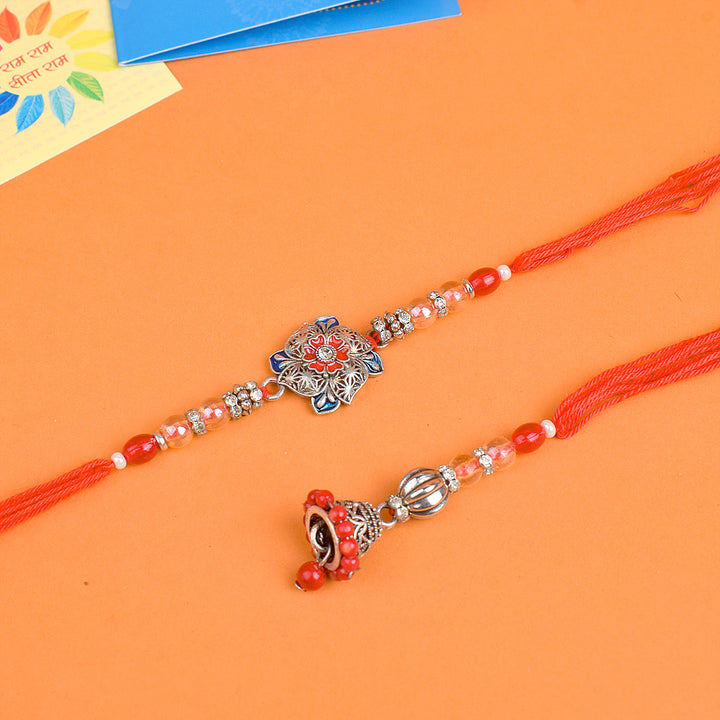 • Package: 1 Men Rakhi, 1 Women Lumba Rakhi, Roli Chawal Pack, Ram & Sita Theme Stickers