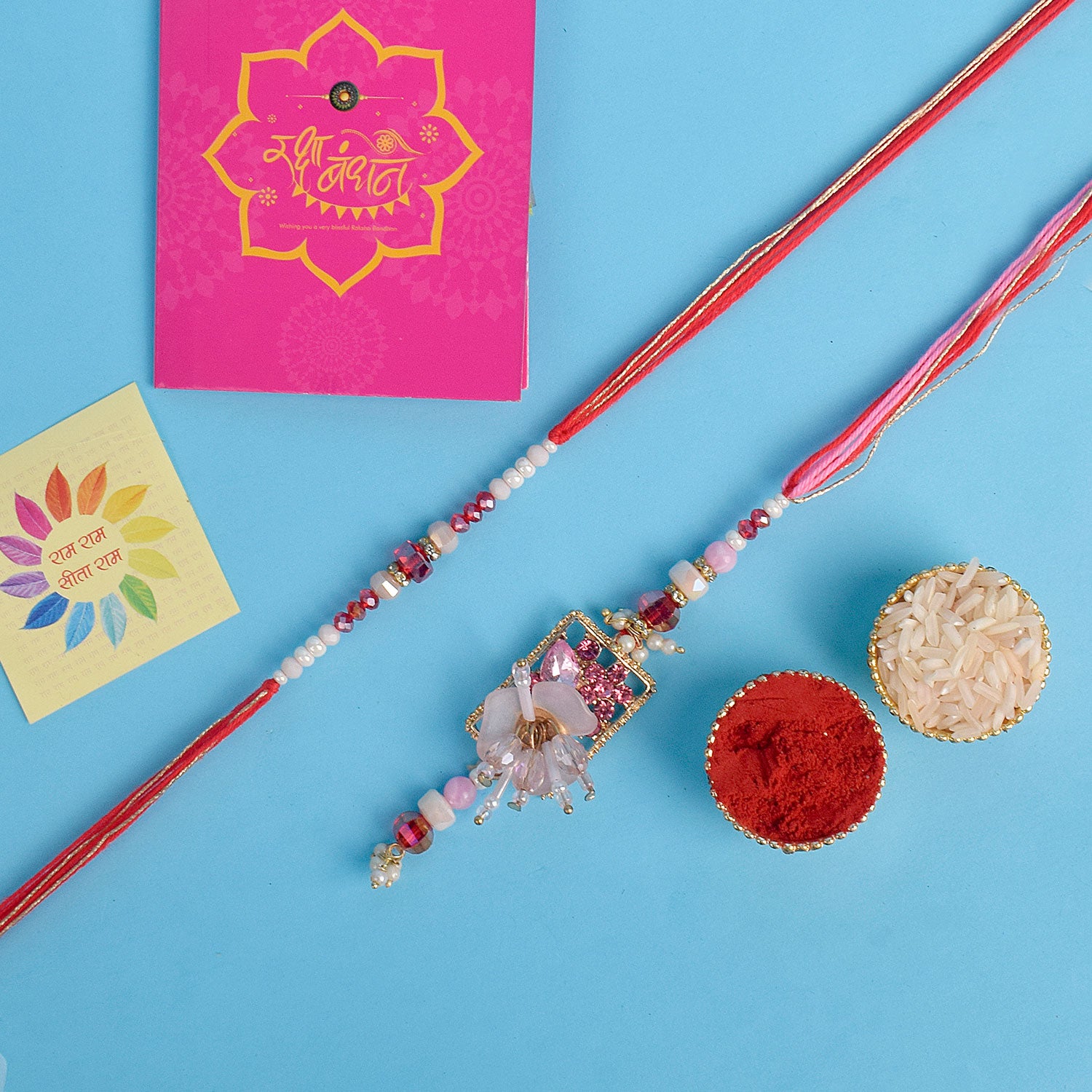 • Package: 1 Men Rakhi, 1 Women Lumba Rakhi, Roli Chawal Pack, Ram & Sita Theme Stickers