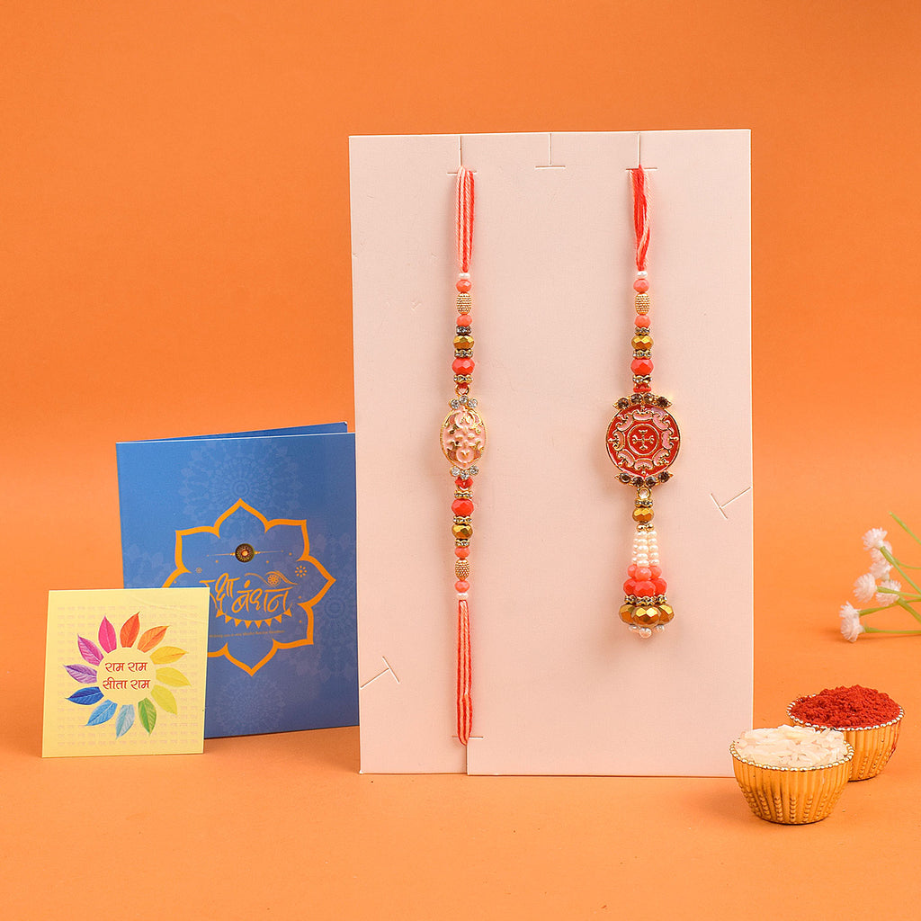 • Package: 1 Men Rakhi, 1 Women Lumba Rakhi, Roli Chawal Pack, Ram & Sita Theme Stickers