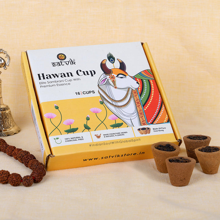 Satvikstore.in offers the best-sized pack of 16 Incense Sambrani Cups havan Cups, accompanied by a convenient cup stand for easy and safe usage. With this pack, you can indulge in the soothing aroma and keep your ambience fragrant for an extended period.