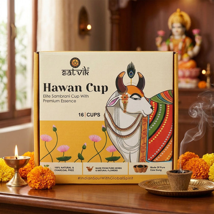 About Product: Satvik Sambrani Cup are made of an Sambrani Cup Made of Pure Cow Dung with Natural Flowers, Guggul and Loban. Its Coal free of natural ingredients that blooms your surroundings.Β Made of Pure Cow Dung with Natural Flowers, Coal Free to provide clean and long burn, The goodness of smoke will soothes you sense, Creating divine atmosphere.