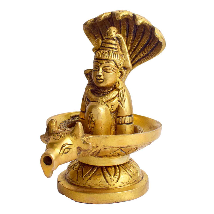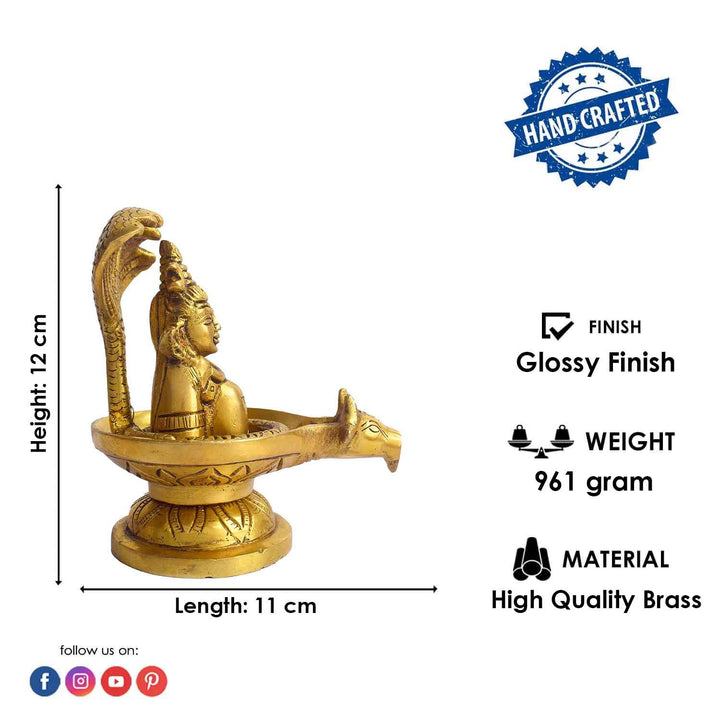 About Product:  The 4.7 Inch Brass Shivalingam and Sheshnag Figurine is a beautifully crafted spiritual idol that combines Lord Shiva's powerful energy with the divine presence of Sheshnag. Made from high-quality brass, this figurine features the Shivalingam, symbolizing Lord Shiva's cosmic power, with the sacred serpent coiling around it.