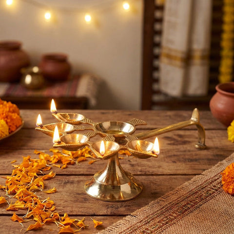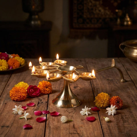 Discover our exquisite collection of diya and deepam, crafted with precision and adorned with intricate designs. Our brass diya not only serve as functional puja items but also add a touch of elegance to your sacred space. Whether you prefer traditional designs or contemporary styles, we have the perfect diya to illuminate your devotion.