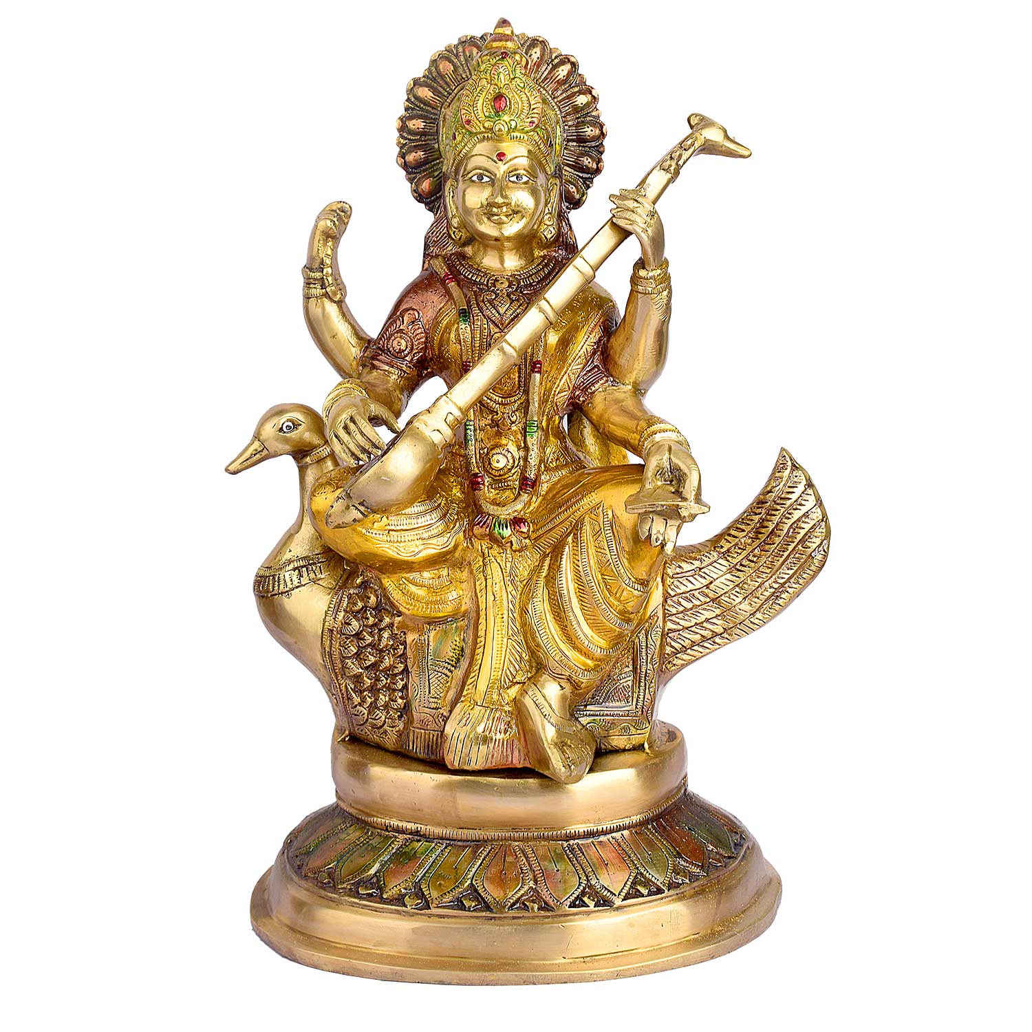 • Material: The SaraswatiΒ Mata Murti is made from High-Quality Brass Material