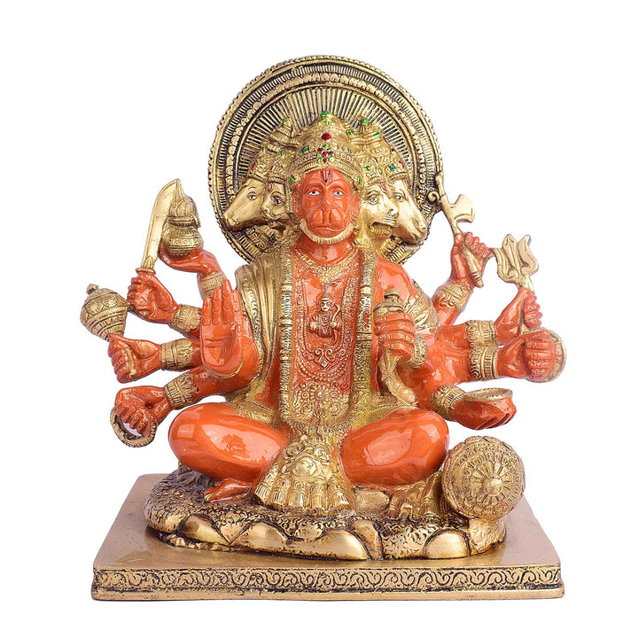 • Item Name: 8.7 Inch Brass Kesari Panchmukhi  Hanuman Big Sitting Idol