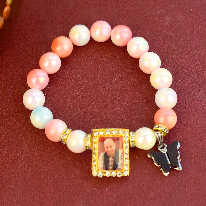 • Item Name: Handmade Butterfly Peach Bracelet with Jai Guruji Swaroop Bracelets