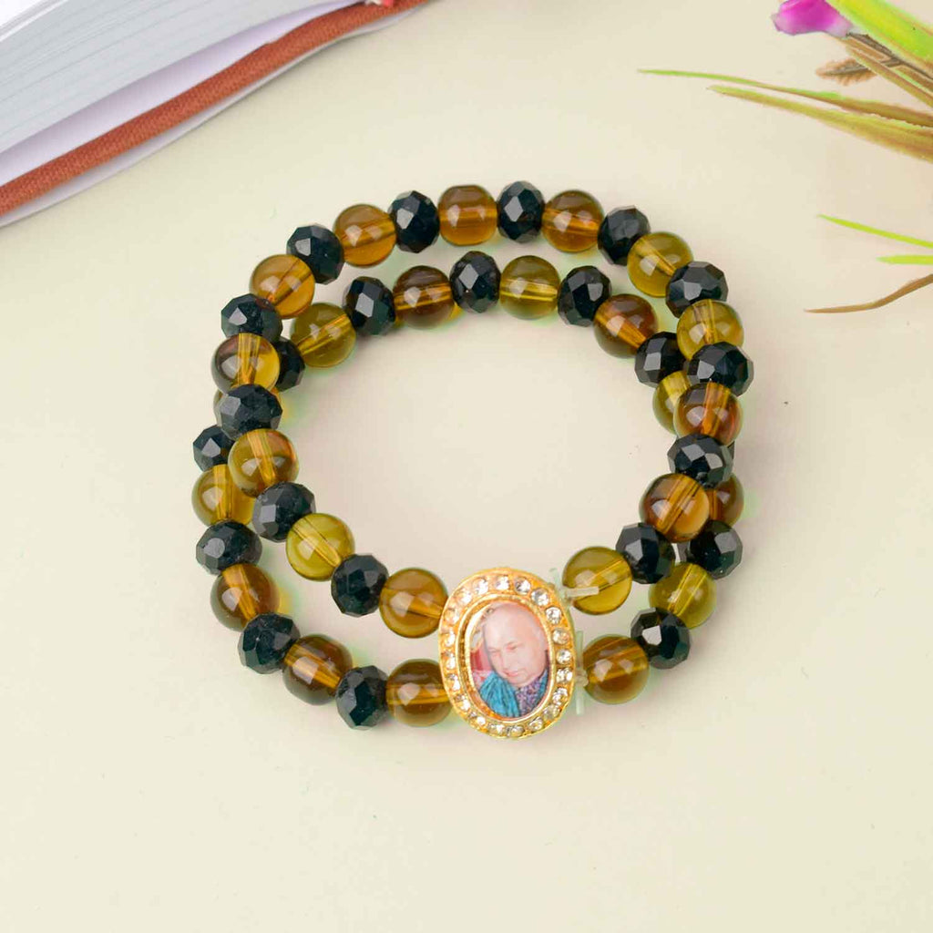 β€’ Material: Spiritual Beads in Black & Brown Tones, Guruji Swaroop Centerpiece, Elastic Stretch Cord