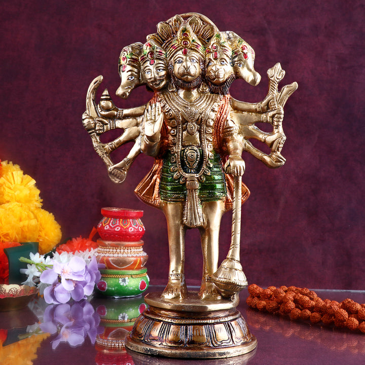 Brass Panchmukhi Hanuman Idol | Puja Room Decor | Brass Gift Item for Housewarming | Brass Standing Panchmukhi Hanuman Idol | Antique Finish Brass Hanuman Idol | Brass Idol | Panchmukhi Hanuman Brass Idol for Temple Decor |