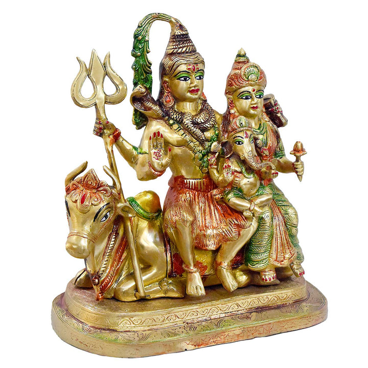 14 Inch Brass Shiv Parivaar Idol with Nandi