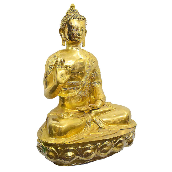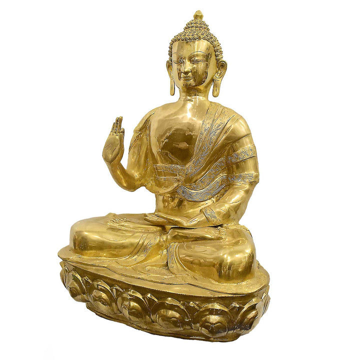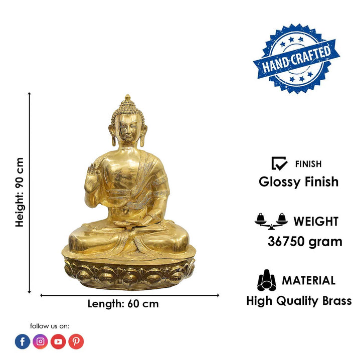 • About the Product: 35 Inch Brass Seated Buddha Statue in Abhaya Mudra on Lotus