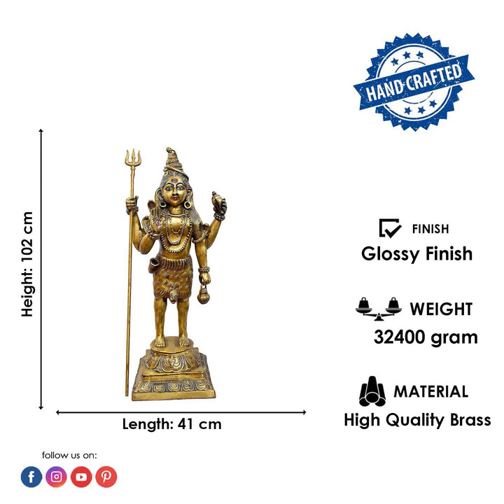 • About the Product: 40 Inch Brass Standing Lord Shiva Statue - Idol with Trishul & Damaru