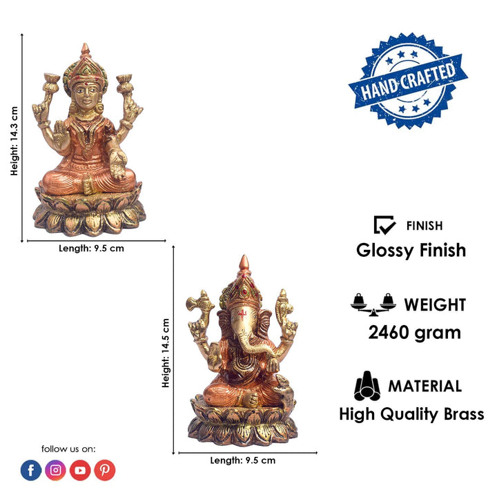 • Item Name: 5.6 Inch Elegant Brass Lakshmi Ganesh Idol