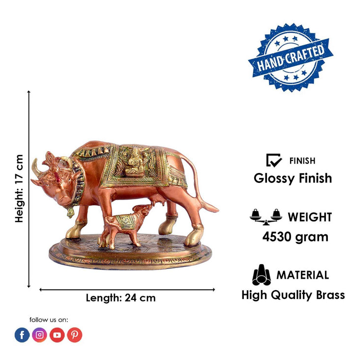 • Material: The Kamdhenu Cow Statue is made from Pure Brass Virgin Material.