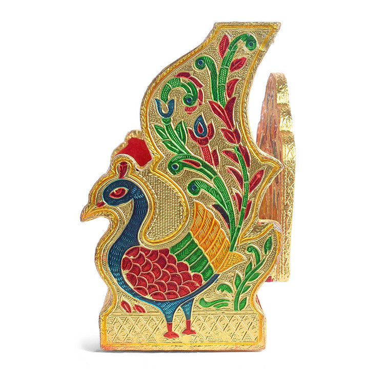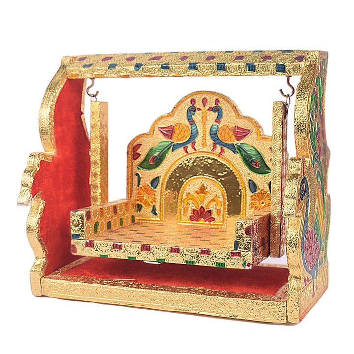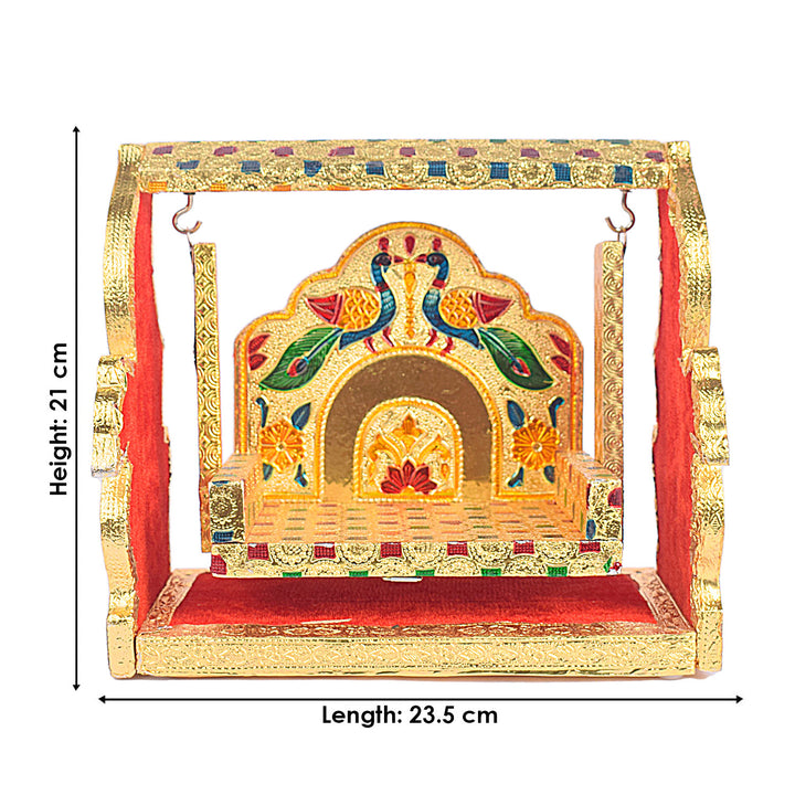Item Name: Golden Meenakari Peacock Singhasan Jhula for Laddu Gopal