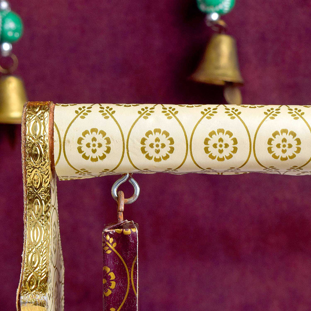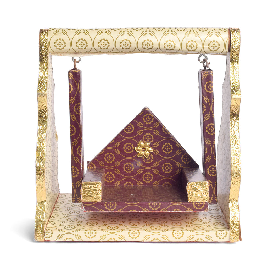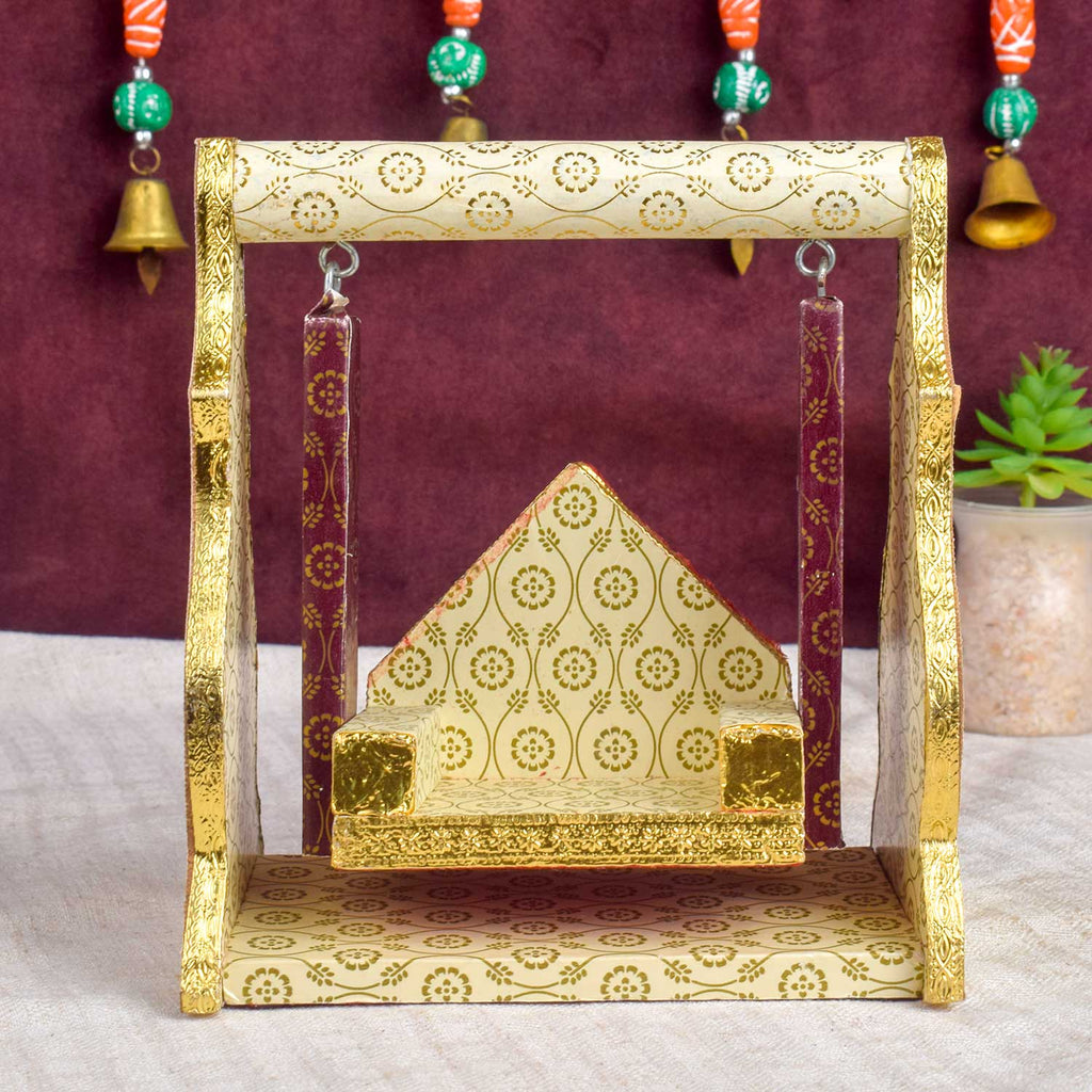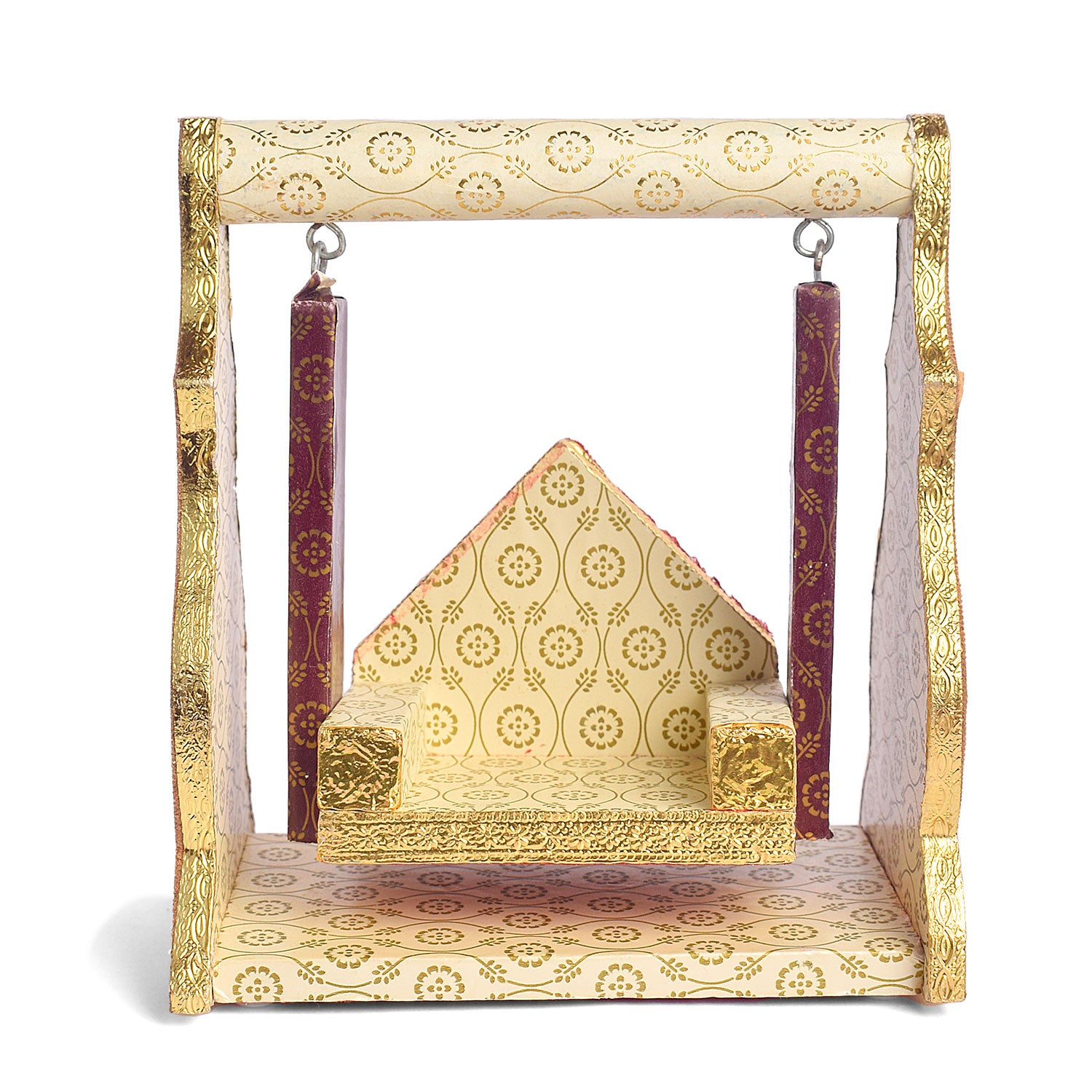 Presenting a divine blend of subtle tradition and elegant design—this Printed Design Jhula features a classic white and gold paper-covered frame paired with a cradle wrapped in rich brown printed paper. The beautiful contrast adds depth and warmth, making it a unique piece for your pooja space.