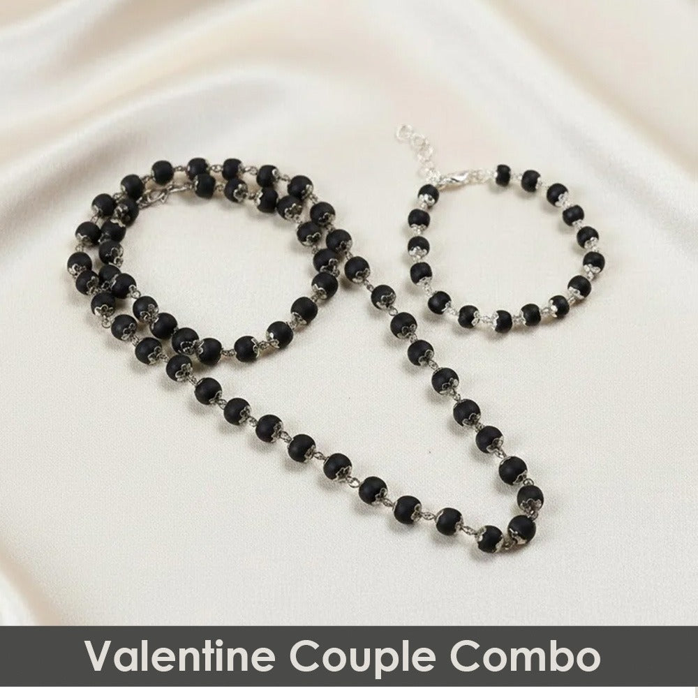 Valentine Gift for Couples Certified Combo of Karungali Mala & Bracelet with Silver Capping
