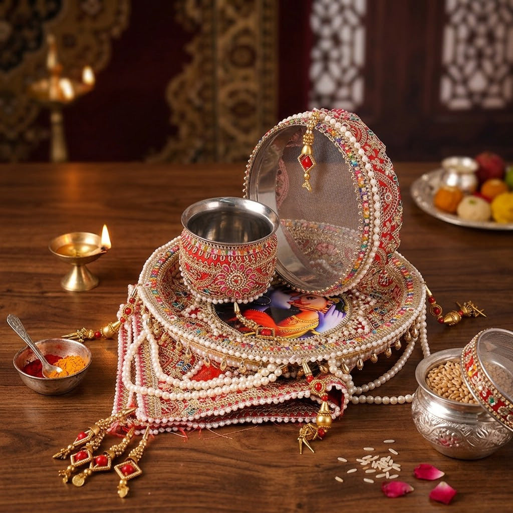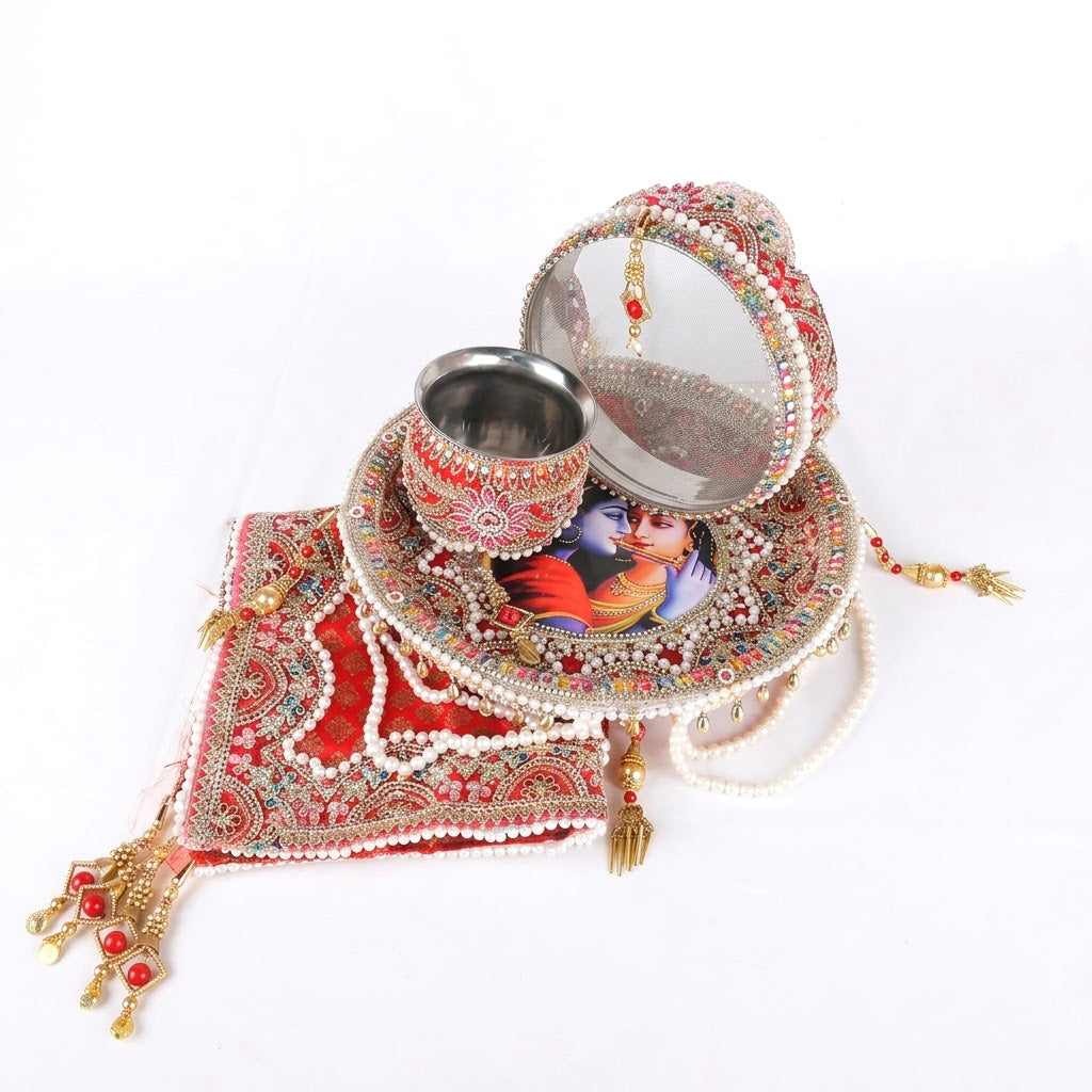 Key Features of this Designer Karwa Chauth Thali Set: