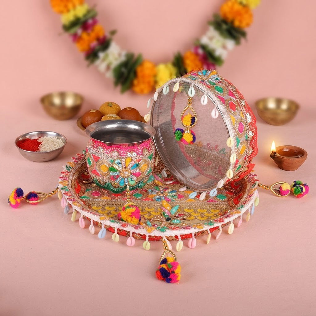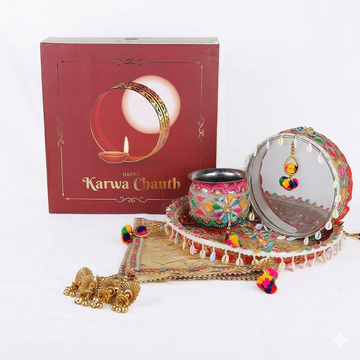 Key Features of this Designer Karwa Chauth Thali Set: