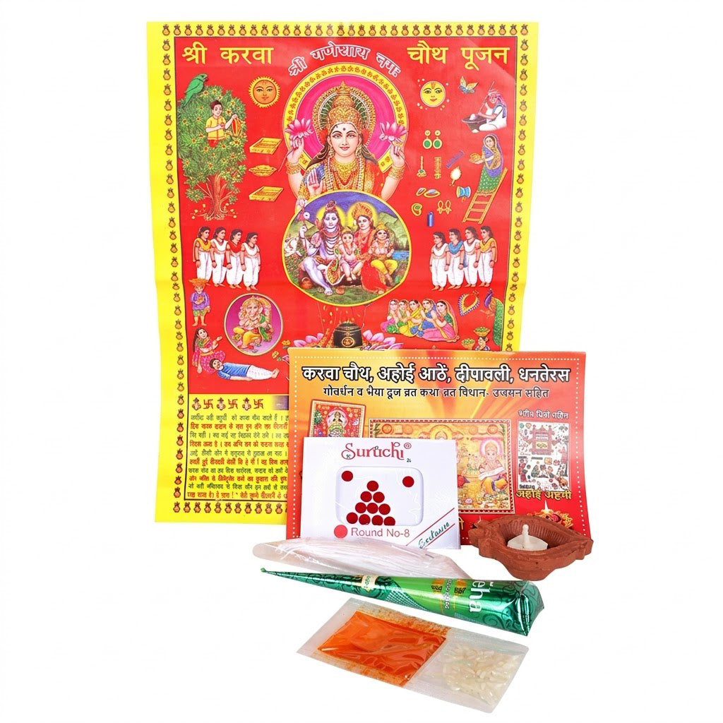 • Instructional Kit: Karwa Chauth booklet and poster included for guided rituals.