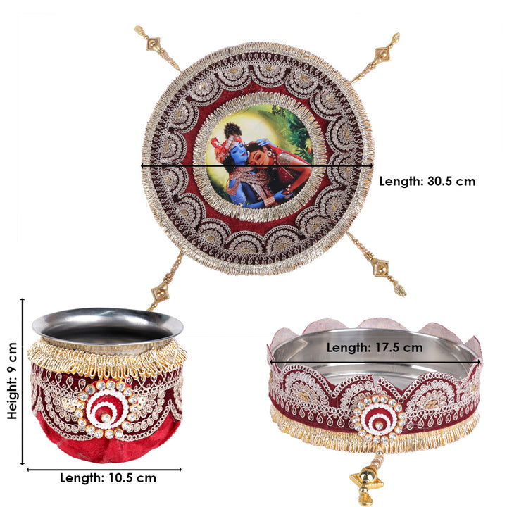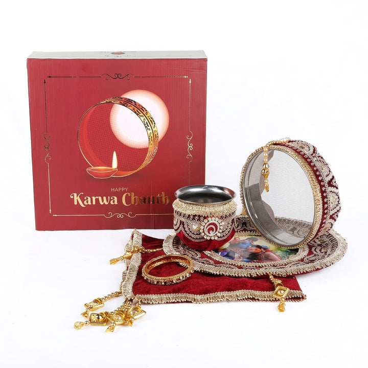 Buy 11 Pc Maroon Embroidery Karwa Chauth Thali Set | Satvikstore.in – satvikstore.in