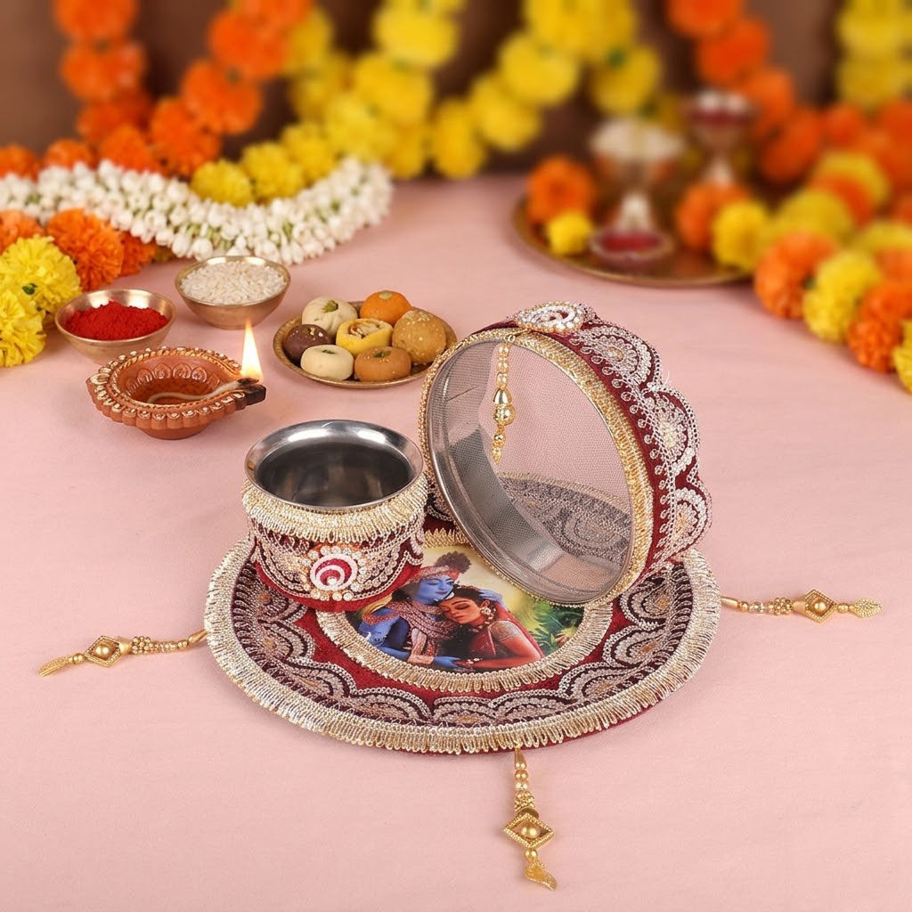 Key Features of this Designer Karwa Chauth Thali Set: