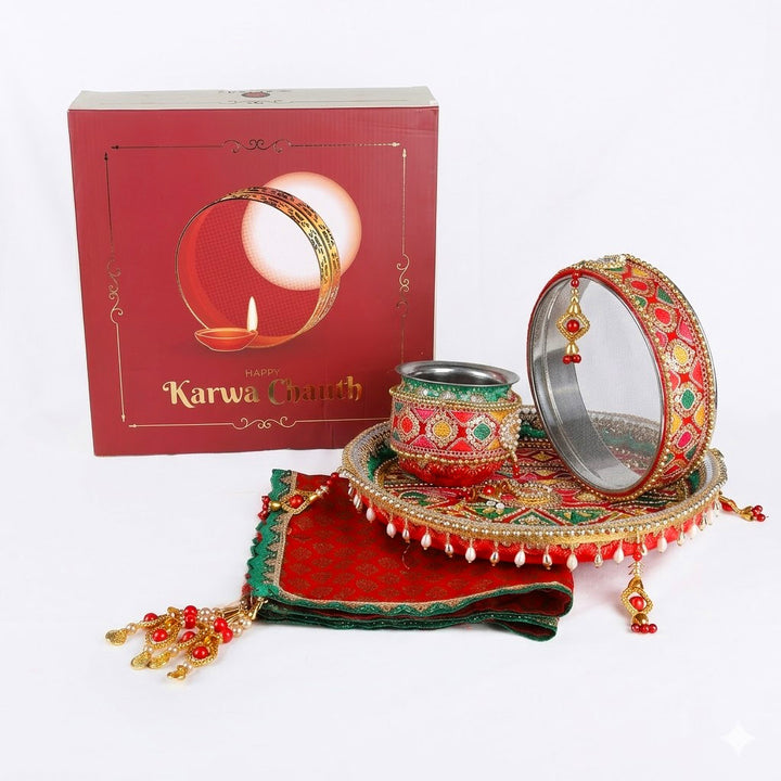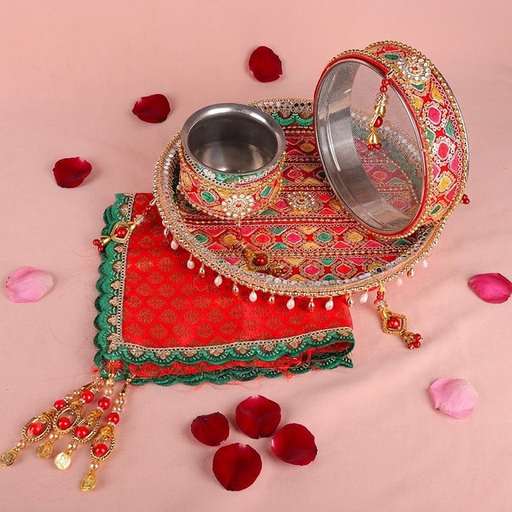 Key Features of this Designer Karwa Chauth Thali Set: