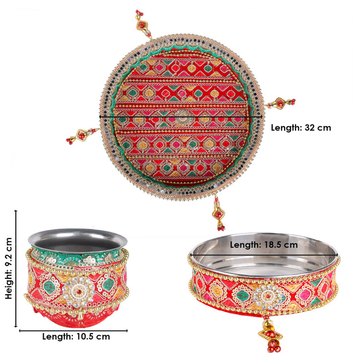 Buy 11 Pc Stunning Red Embroidery Karwa Chauth Thali Set| Satvikstore.in – satvikstore.in