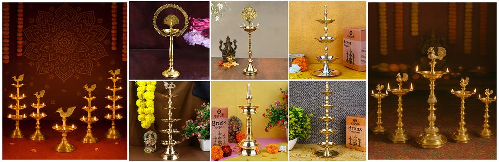 Product NameSizes AvailableUsageKerala Nilavilakku 10β to 52βPooja, temple, inauguration Kerala 3 Step Peacock Diya12β, 18β, 24βWedding stage, cultural eventKerala Kuthu Vilakku Brass11β, 13β, 18βTemple rituals, daily worshipPaavai Vilakku Brass16β, 24β, 30βReception, luxury dΓ©corBrass Kerala Samai Deepak18β, 24β, 36β, 44βMandir, festivals, event dΓ©cor