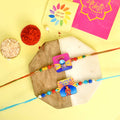 Beaded Bhaiya Rakhi Set of 2: Bedecked with colorful beads, these rakhis represent the joyous moments and cherished memories of growing up together. Embrace nostalgia and affection with this delightful beaded rakhi set.