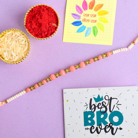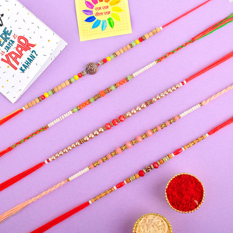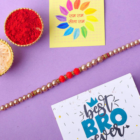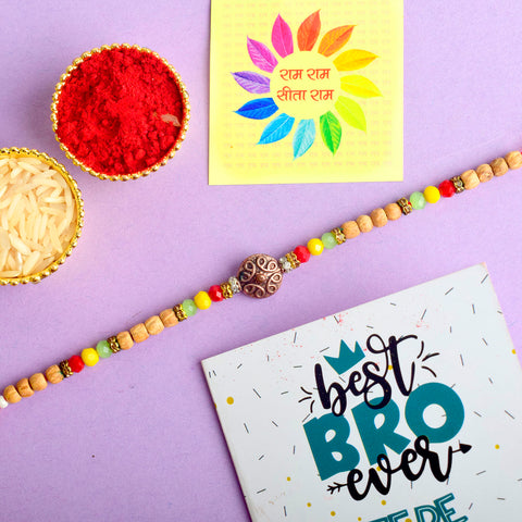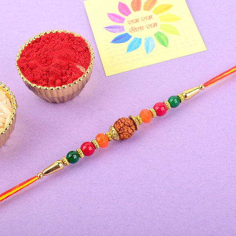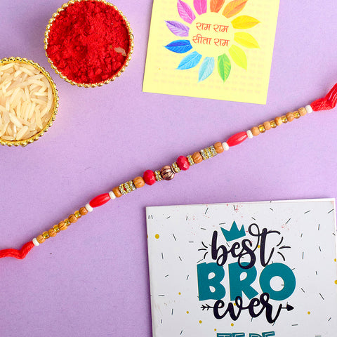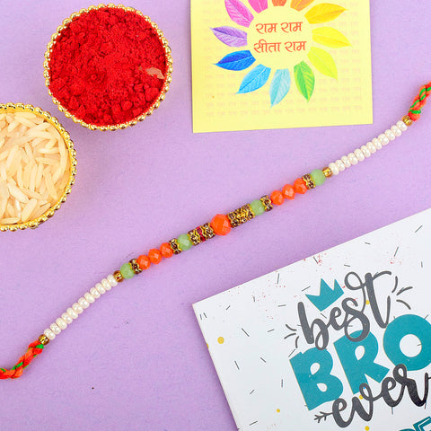 Beaded Rakhi: Adorned with intricate beads, our beaded rakhi collection exudes charm and elegance. Celebrate the joyous bond with your siblings as you tie these vibrant and delightful rakhis on their wrists.