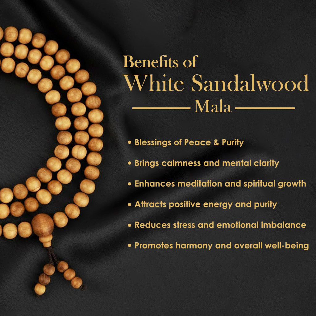 • Material: 100% Natural White Sandalwood (Chandan) Beads