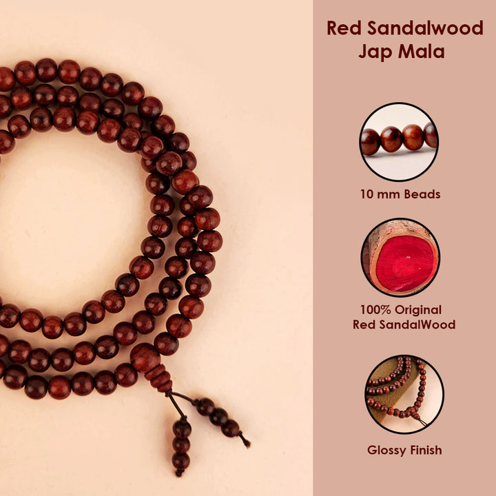 Certified 10mm 100% Original Authentic Pure Red Sandalwood Jap Mala (Andhra Pradesh)