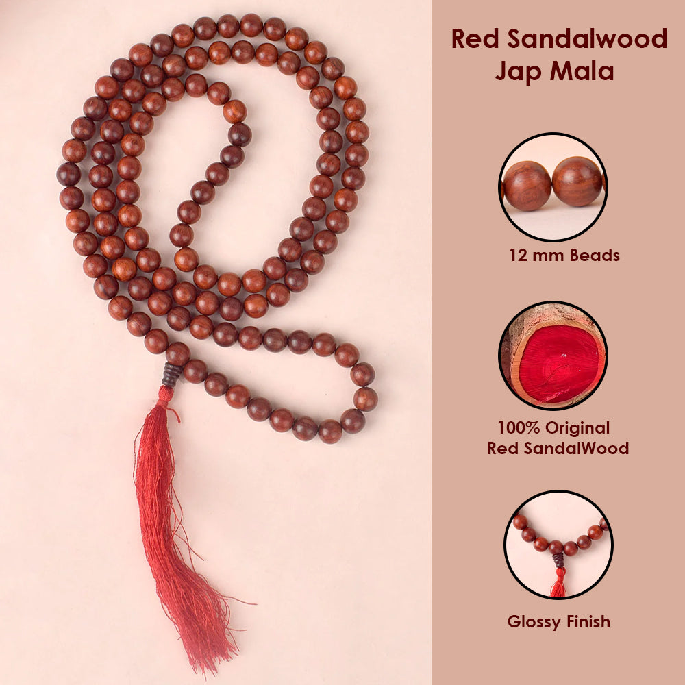 Certified 12mm 100% Original Authentic Pure Red Sandalwood Jap Mala (Andhra Pradesh)