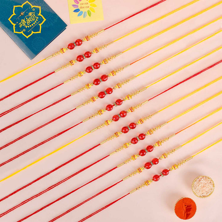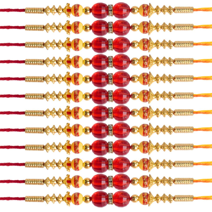 Beaded Bhaiya Rakhi Set of 2: Bedecked with colorful beads, these rakhis represent the joyous moments and cherished memories of growing up together. Embrace nostalgia and affection with this delightful beaded rakhi set.