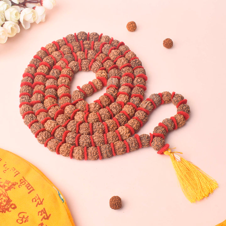 • Item Name: 5 Mukhi Rudraksha Kantha Mala with 108 Beads Velvet Thread
