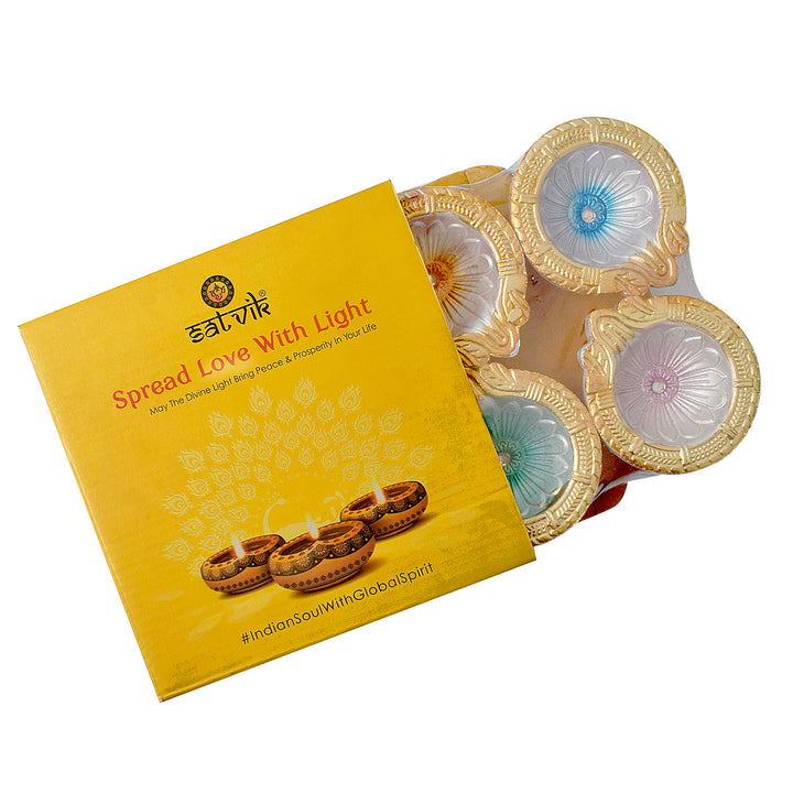 For those who appreciate the simplicity of tealights and candles, SatvikStore.in offers an array of options, each exuding a unique charm. Decorating your home becomes a spiritual journey with Laxmi Charan and Swastik stickers, ensuring that auspiciousness permeates every corner.