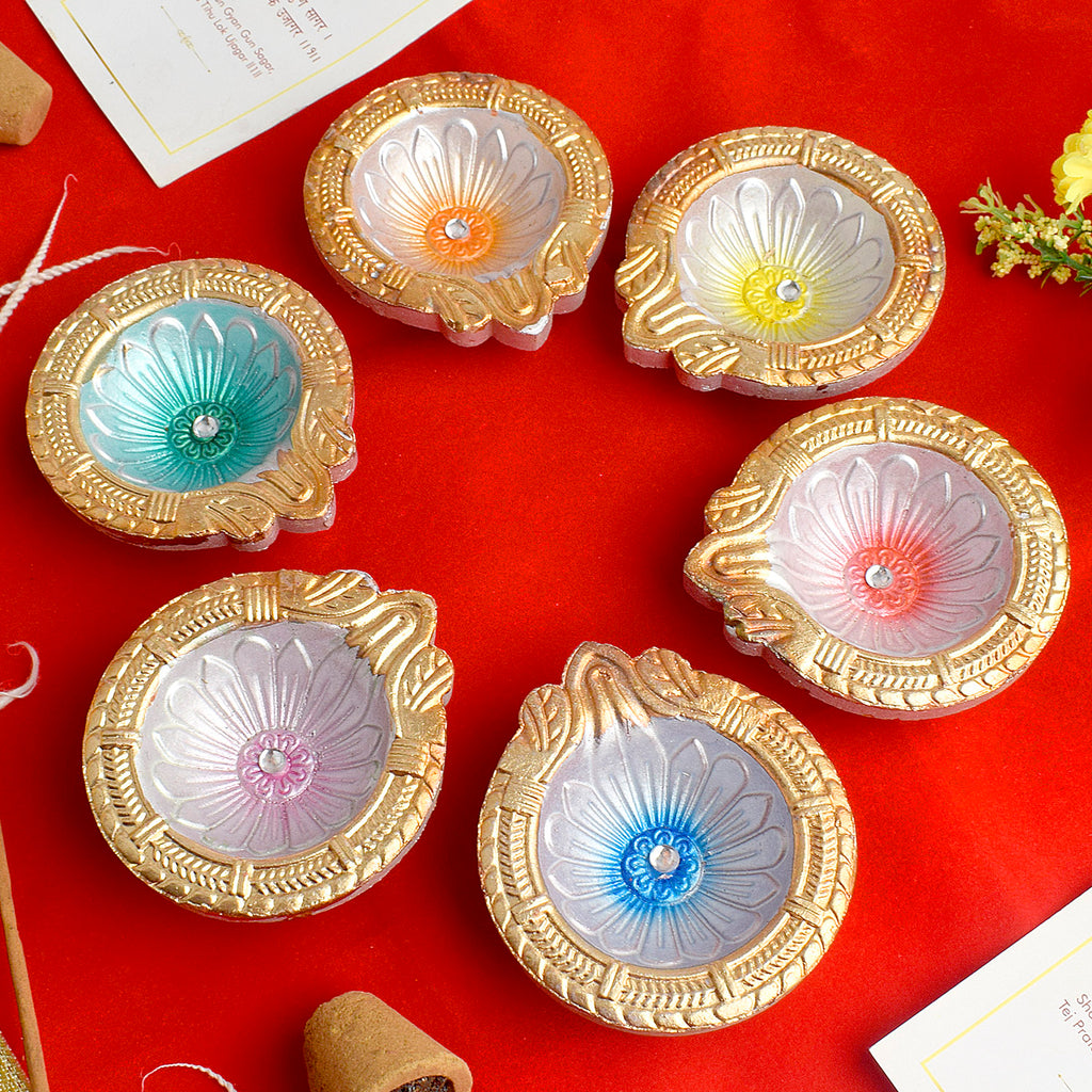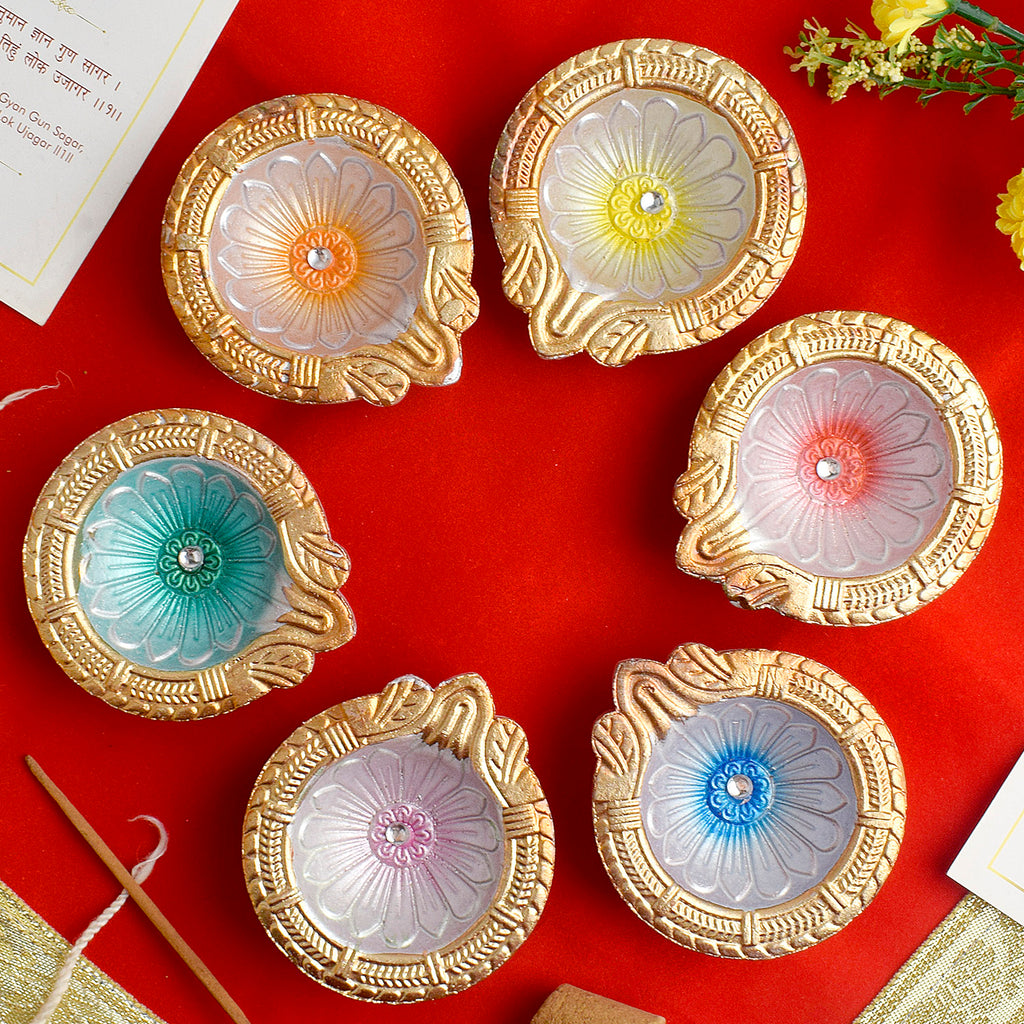 Crafted Light Stunning Clay Diyas for Diwali Celebrations Set of 6
