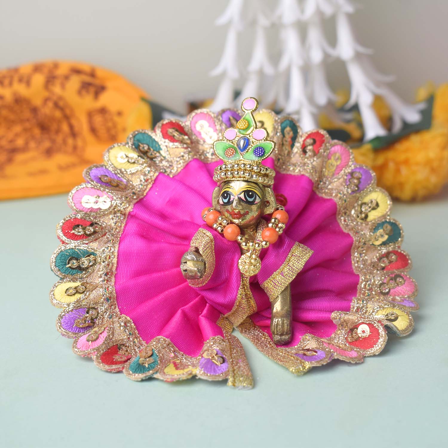 Perfect for Janmashtami, daily darshan, or special pooja rituals, this dress embodies exquisite craftsmanship and devotional artistry. Let your beloved deity radiate charm and splendor in this premium attire, turning your pooja room into a haven of beauty and devotion.