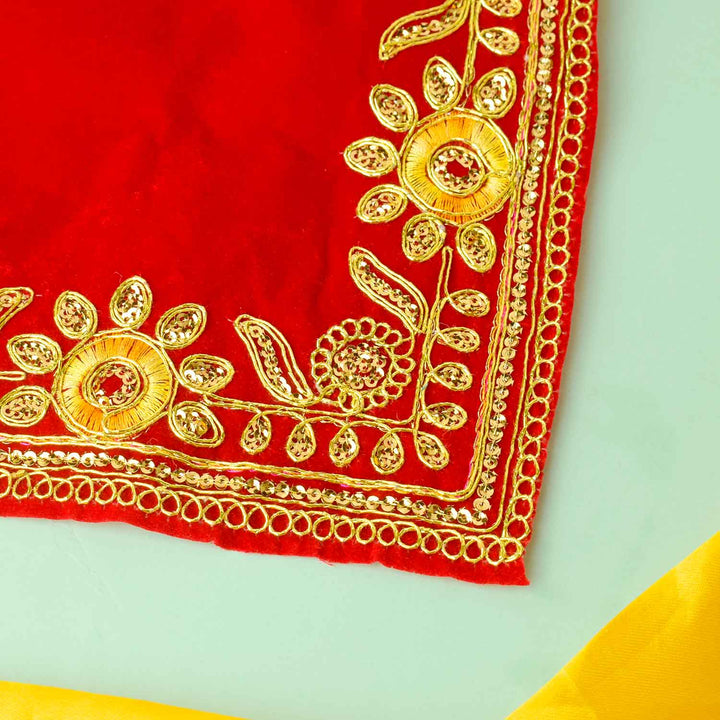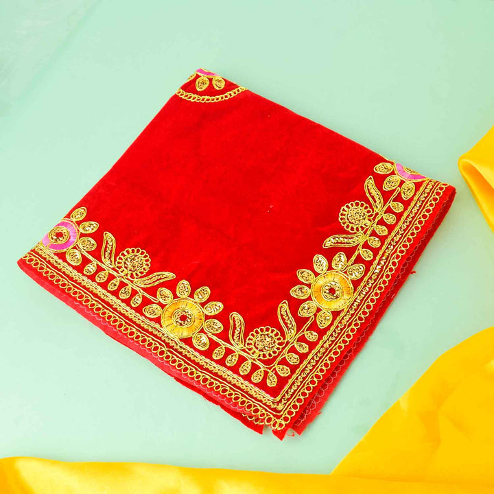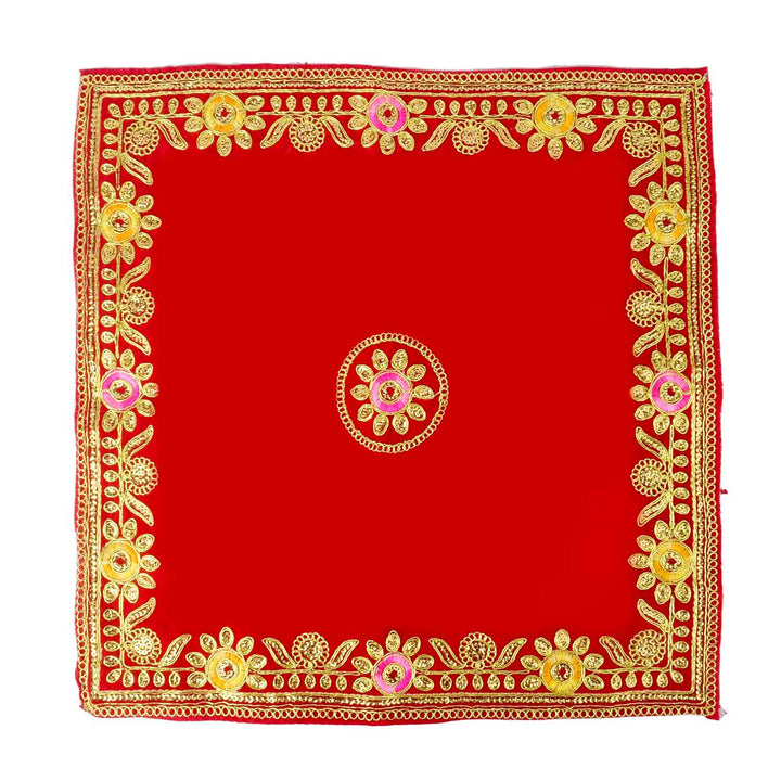 About Product: The Flower Designer Aasan set includes 4 beautifully crafted velvet mats, each measuring 16x16 inches. These aasans feature intricate flower designs and are enhanced with Golden Lace all over the Border, making them an ideal addition to your puja space. Their premium velvet material provides a smooth surface for placing idols, kalash, or other sacred items during prayers. Perfect for creating a divine aura in your home mandir, temple, or during religious ceremonies, these flower design aasans bring both elegance and spiritual harmony to any setting.