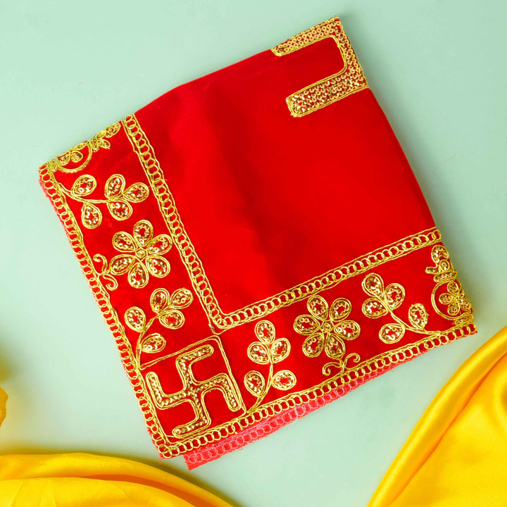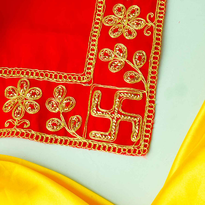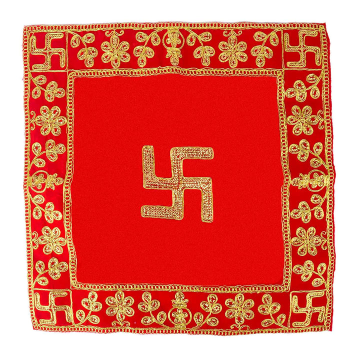 Heavy Design Aasan | Velvet Pooja Mat Set | Designer Puja Aasan | Aasan 16x16 Pack of 4 | Chowki Cover Cloth | Temple Cloth Set | Puja Aasan Velvet | Decorative Mandir Aasan | Red Velvet Asan with Lace | Religious Mat for Temple