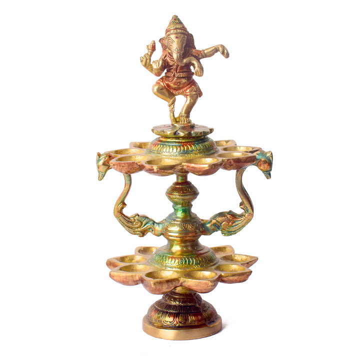 Handcrafted Brass 21 Wick Ganesha Diya – 2 Step Aarti Lamp