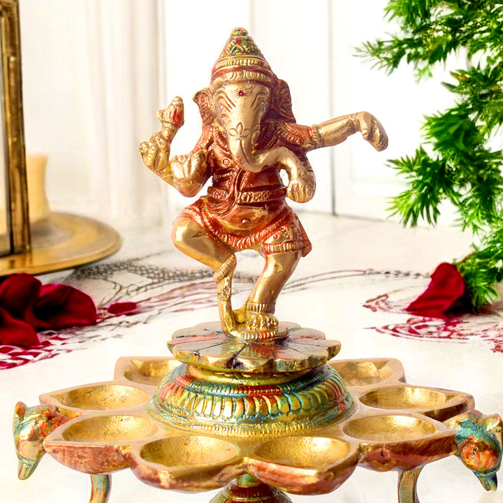 Buy Brass Handcrafted Brass 21 Wick Ganesha Diya 2 Step| Satvikstore.in – satvikstore.in