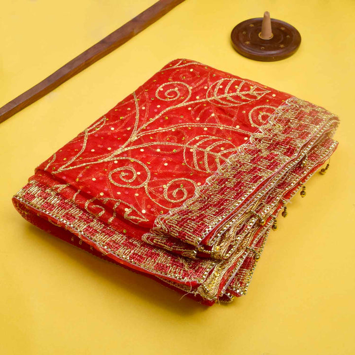 Handcrafted Mata chunri | 84x42 inch pooja cloth | artisan-made festive vastra | traditional deity dupatta | Navratri pooja accessory | temple decoration fabric | sacred idol covering | devotional pooja cloth | elegant red chunni | handcrafted pooja fabric