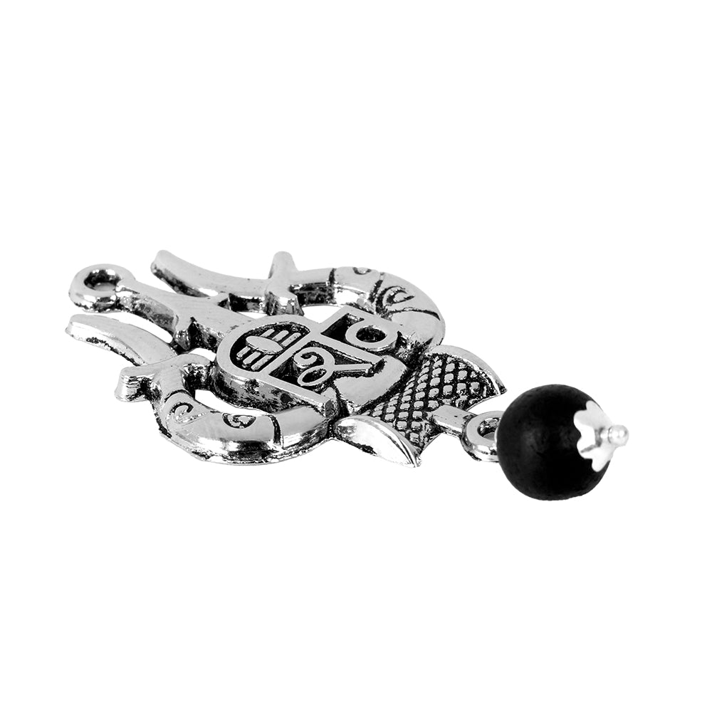 Silver Plated Pendant Shiv Name & Trishul - with karungali Bead