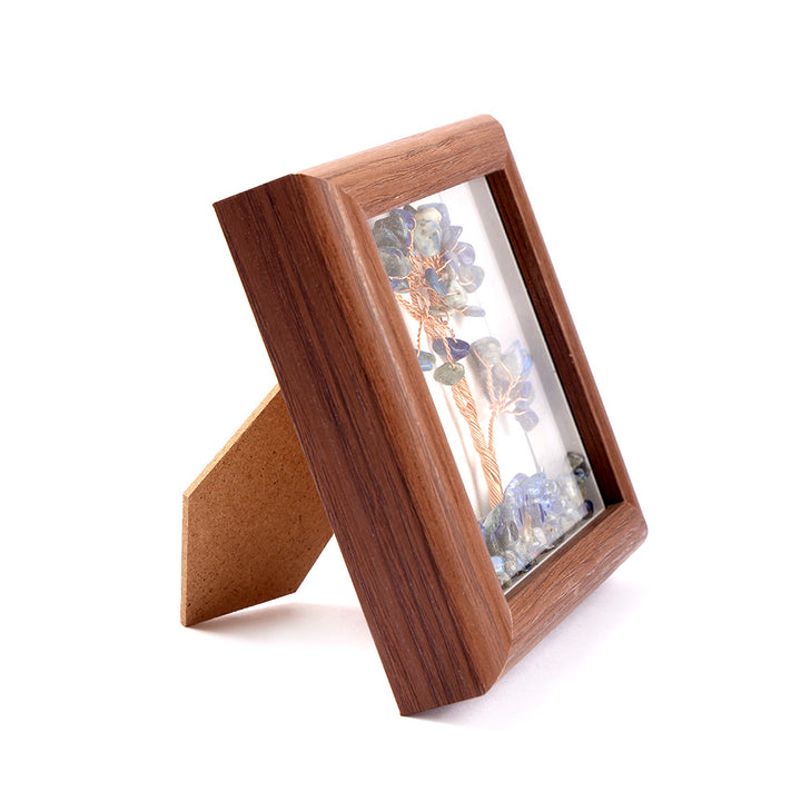 About the Product: The Lapis Lazuli Tree Frame is a beautiful healing stone décor piece designed to enhance wisdom, harmony, and positive energy in your living or working space. Crafted with natural Lapis Lazuli crystal chips arranged in a tree formation, this frame symbolizes growth, strength, and inner balance.